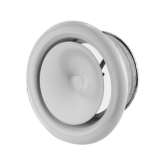 Zuluftventil aus Metall Ø 160 mm, weiss (RAL 9010), mit Bajonettverschluss.