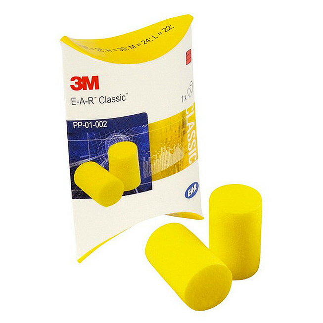 Gehörschutzstöpsel für geringe und mittlere Lärmbelastungen. Vor dem Einführen müssen die Stöpsel zwischen den Fingern zusammengerollt werden. Der Schaumstoff dehnt sich dann in kurzer Zeit wieder aus und passt sich jeder Gehörgangsform und -grösse an.