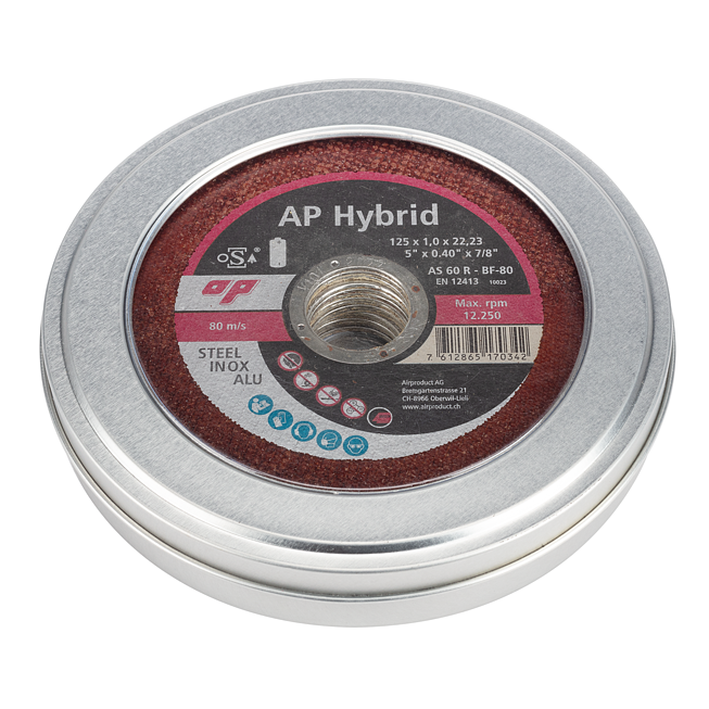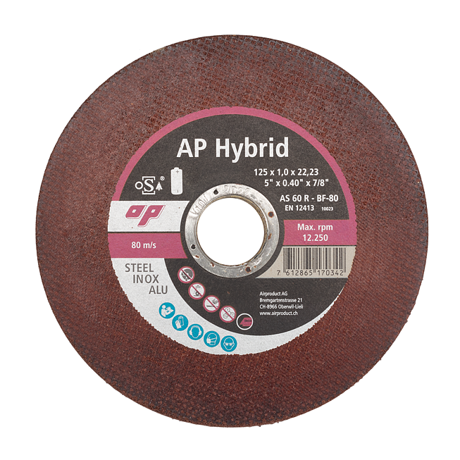 | Produktspezifikation | AP Trennscheibe Hybrid: Ø 125 | Dicke 1mm | Ø Bohrung 22.23 mm |