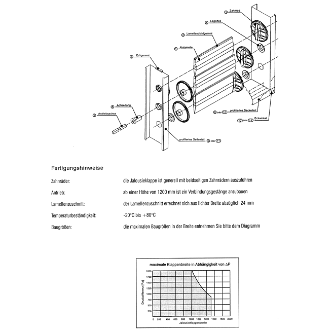 Aluminiumlamelle mit Lamellendichtgummi, Zahnrad aussenliegend, Lamellenabstand 165 mm