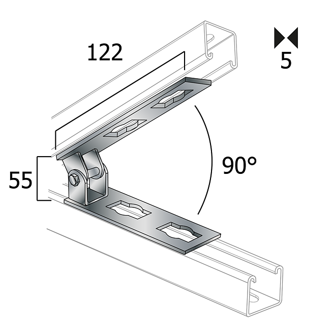 Gelenkverbinder 0-90° längs, feuerverzinkt für flexible und korrosionsgeschützte Verbindungen.