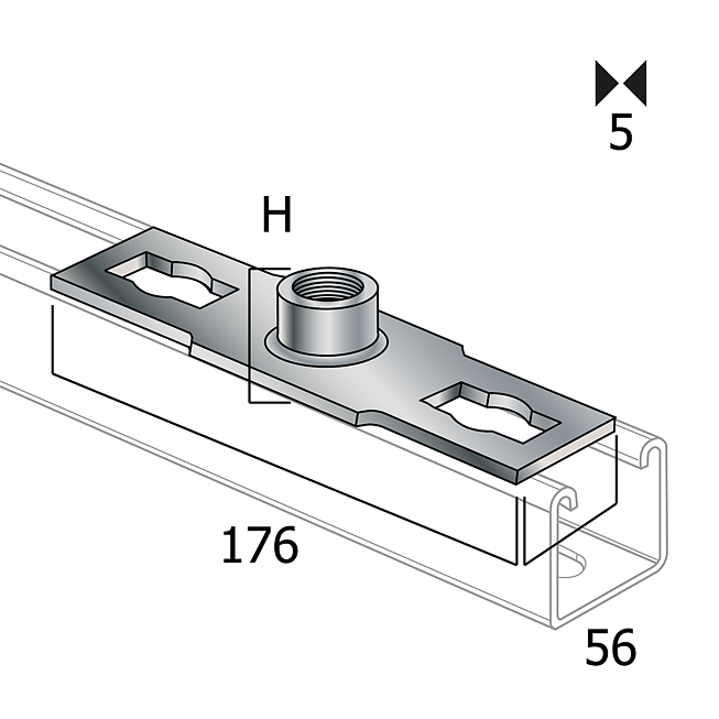 Grundplatte 41 für Montageschiene, Maße M16x18 mm, verzinkt für eine stabile und langlebige Befestigungslösung.