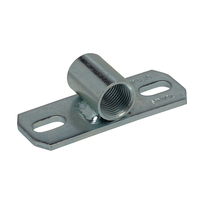 | Produktspezifikation | Grundplatte mit 90° Innengewinderohr geschweisst 2-Loch Verzinkt Mittlere Ausführung: 1/2" | 100mm x 40mm x 4.0mm |