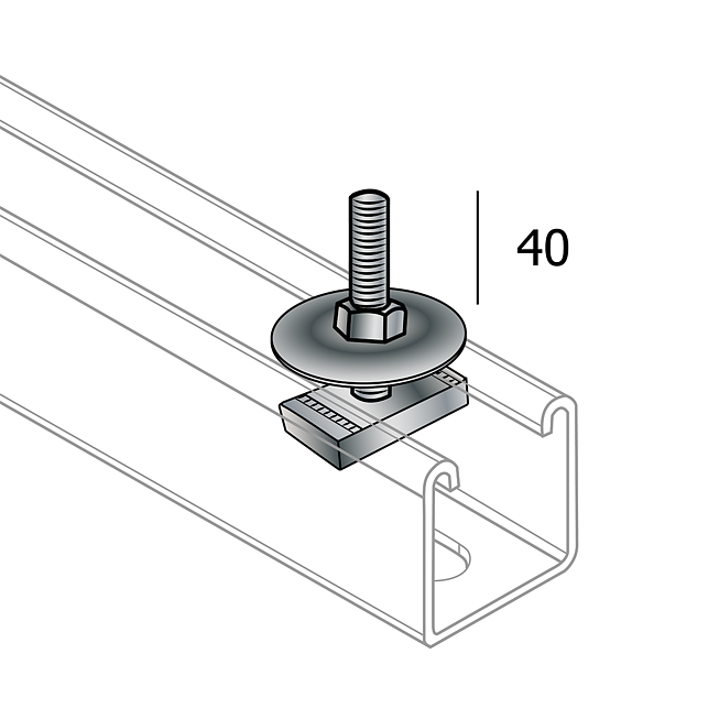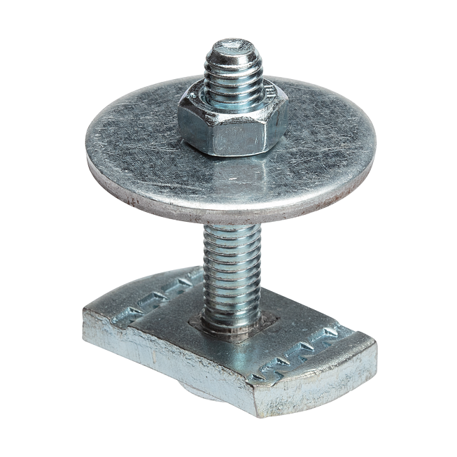Schiebemutter für einen besseren Halt in der Montageschiene. Mit Mutter und U-Scheibe für eine bessere Stabilität.