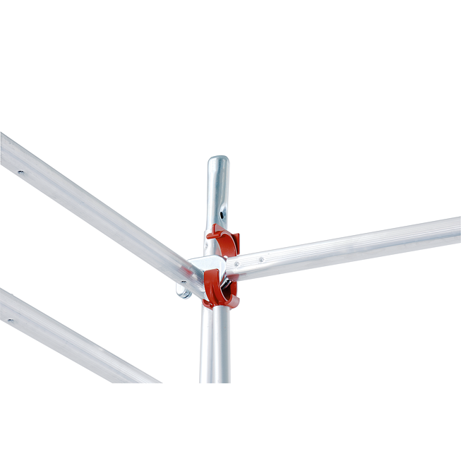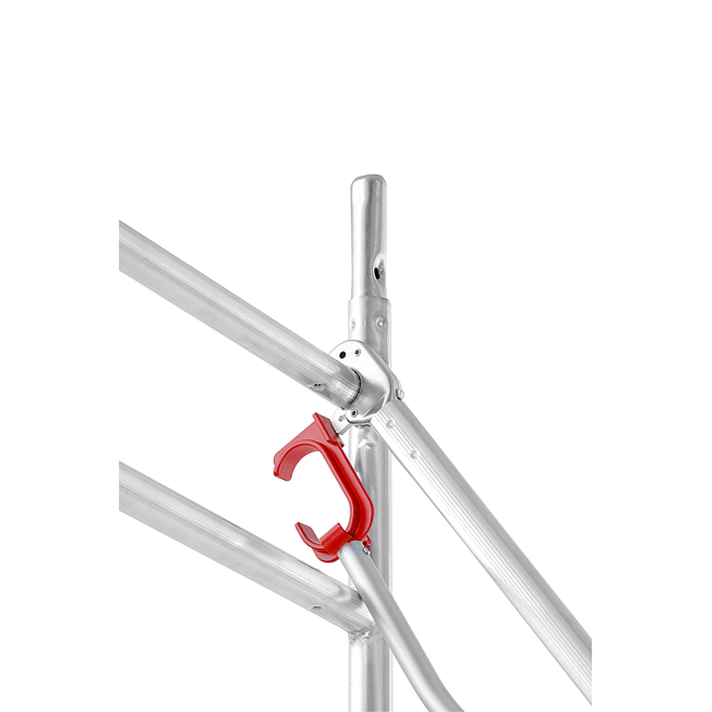 Leichterer Auf- & Abbau durch Verwendung einer Bühne je Etage, Gerüstteile können über einzelne Etagen weitergereicht werden. Patentierten Bajonett-Ausleger für den Aufbau vom Boden & Lifter für Einhängen der Verstrebungen. Aufbau mit Höhenversatz möglich