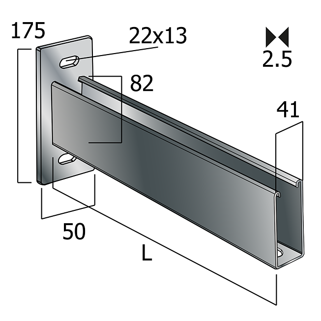 ProduktspezifikationKonsole Doppelschiene Feuerverzinkt Längs mit 4-Loch Grundplatte (Langloch-System Eco): 41x82 | 750mm | 2.5mm