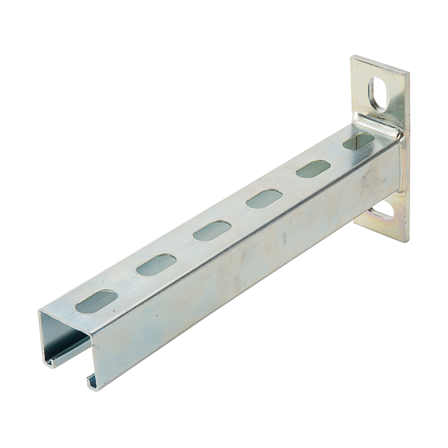 Konsole längs 41x41x2 mm, L=300 mm, feuerverzinkt, für besonders stabile und korrosionsgeschützte Befestigungen von Montageschienen in längsgerichteter Ausrichtung.