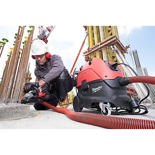 Zugelassen für Staubklasse L: Kompakter 30L Behälter für den Einsatz auf der Baustellen/ in der Werkstatt. 4500L/ Min Luftstrom mit 250mbar Unterdruck.