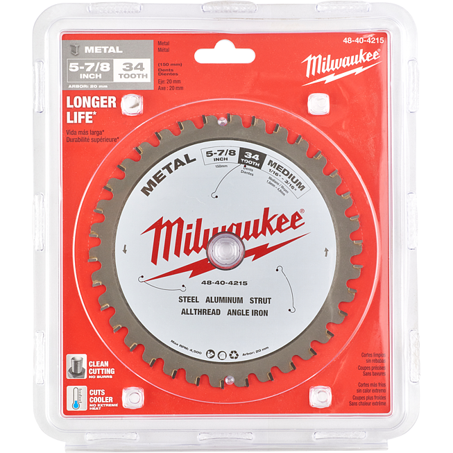 | Produktspezifikation | Milwaukee Akku Metall-Kreissägenblatt für Baustahl | 150x20x1.6x34: 34 Zähne |