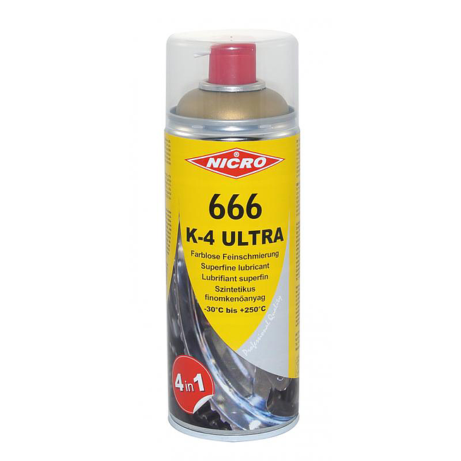 | Produktspezifikation | Nicro Trockenschmier-Spray 666 K-4 ULTRA Hohe Kapillarwirkung: Dose 400ml | Transparent | Klar |