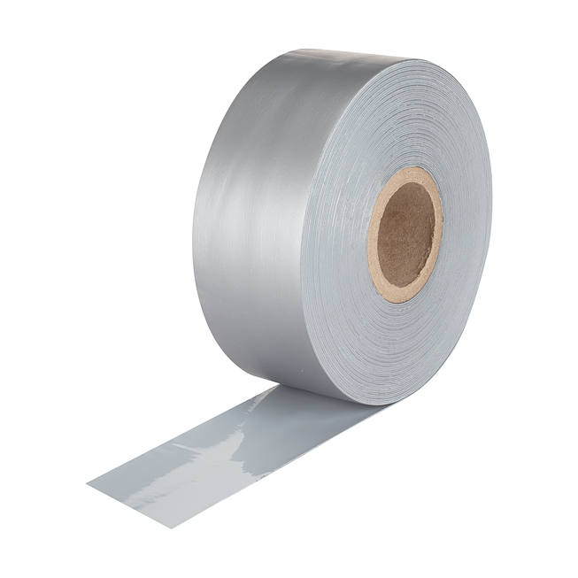 Kaltschrumpfband mit 10% Vordehnung zur Abdichtung/ Nachdichtung eines Luftleitungssystems: Durch den Rückschrumpfungsprozess der Trägerfolie legt sich das Band fest um die abzudichtende Verbindung, die Bildung von Falten wird zugleich vermieden.