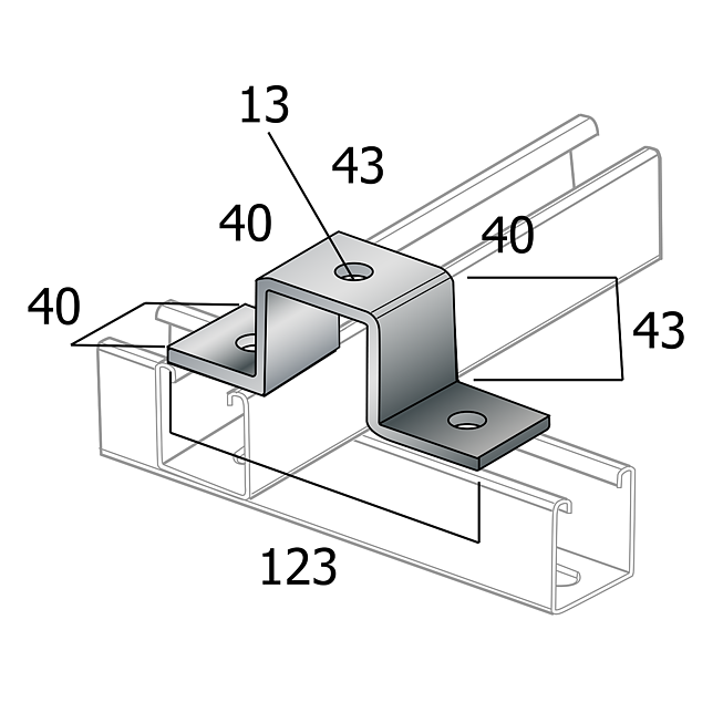 | Produktspezifikation | Schienenbügel | Schienen-Klemm-Verbinder Verzinkt (Langloch-System Eco): 41x41 | 5-Loch | 2D |