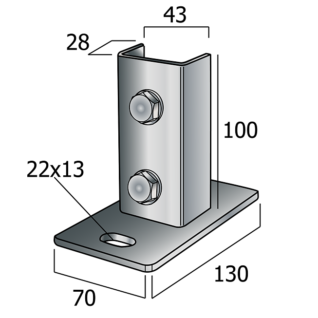 | Produktspezifikation | Schienenfuss | Wandflansch Feuerverzinkt Längs Leichte Ausführung (Langloch-System Eco): 41x21 | 41x41 | 3D Längs |