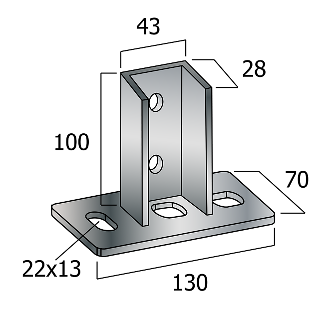 | Produktspezifikation | Schienenfuss | Wandflansch Feuerverzinkt Quer Leichte Ausführung (Langloch-System Eco): 41x21 | 41x41 | 3D Quer |