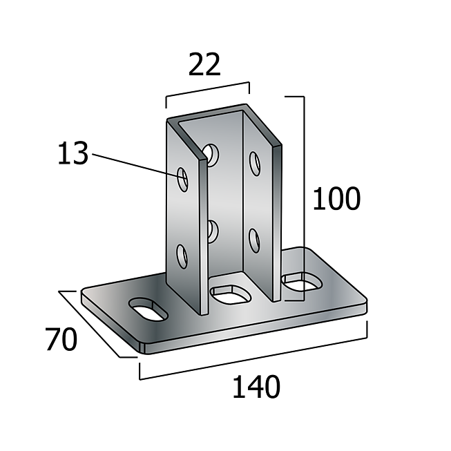 | Produktspezifikation | Schienenfuss | Wandflansch Feuerverzinkt Quer Schwere Ausführung (Langloch-System Eco): 41x21 | 41x41 | 3D Quer |