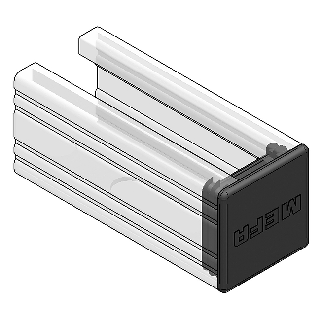 Die Schutzkappe 45/40 in schwarz für Profilschienen schützt die Enden der Schienen vor Staub, Feuchtigkeit und mechanischen Beschädigungen und sorgt für eine sichere und saubere Installation.