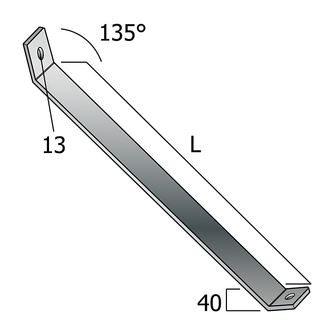 | Produktspezifikation | Strebe | Verstärkungsstrebe 135° Feuerverzinkt (Langloch-System Eco): 200mm | 40mm |