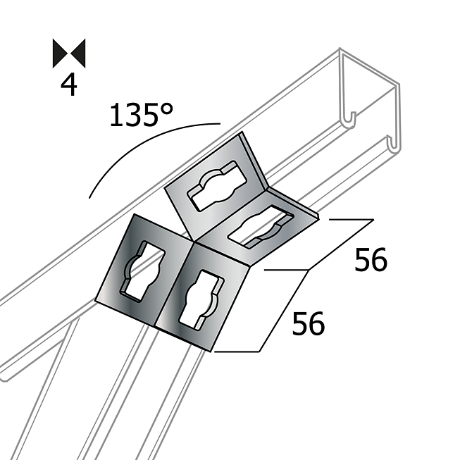 Winkelverbinder 135°, Länge und Höhe 56 mm, feuerverzinkt für robuste und korrosionsgeschützte Verbindungen.