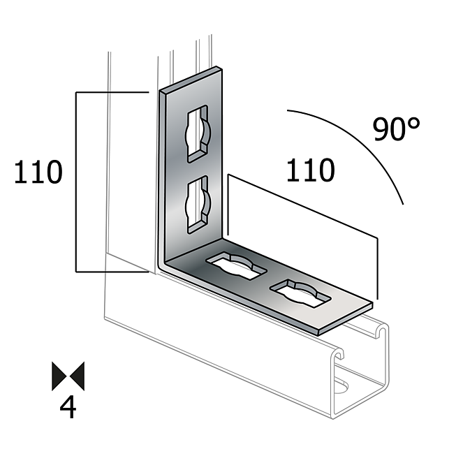 ProduktspezifikationWinkel-Verbinder | Eck-Verbinder 90° Feuerverzinkt (Profi Knopf-System): Locher Nr. 4 | 2D | 110mmx110mm